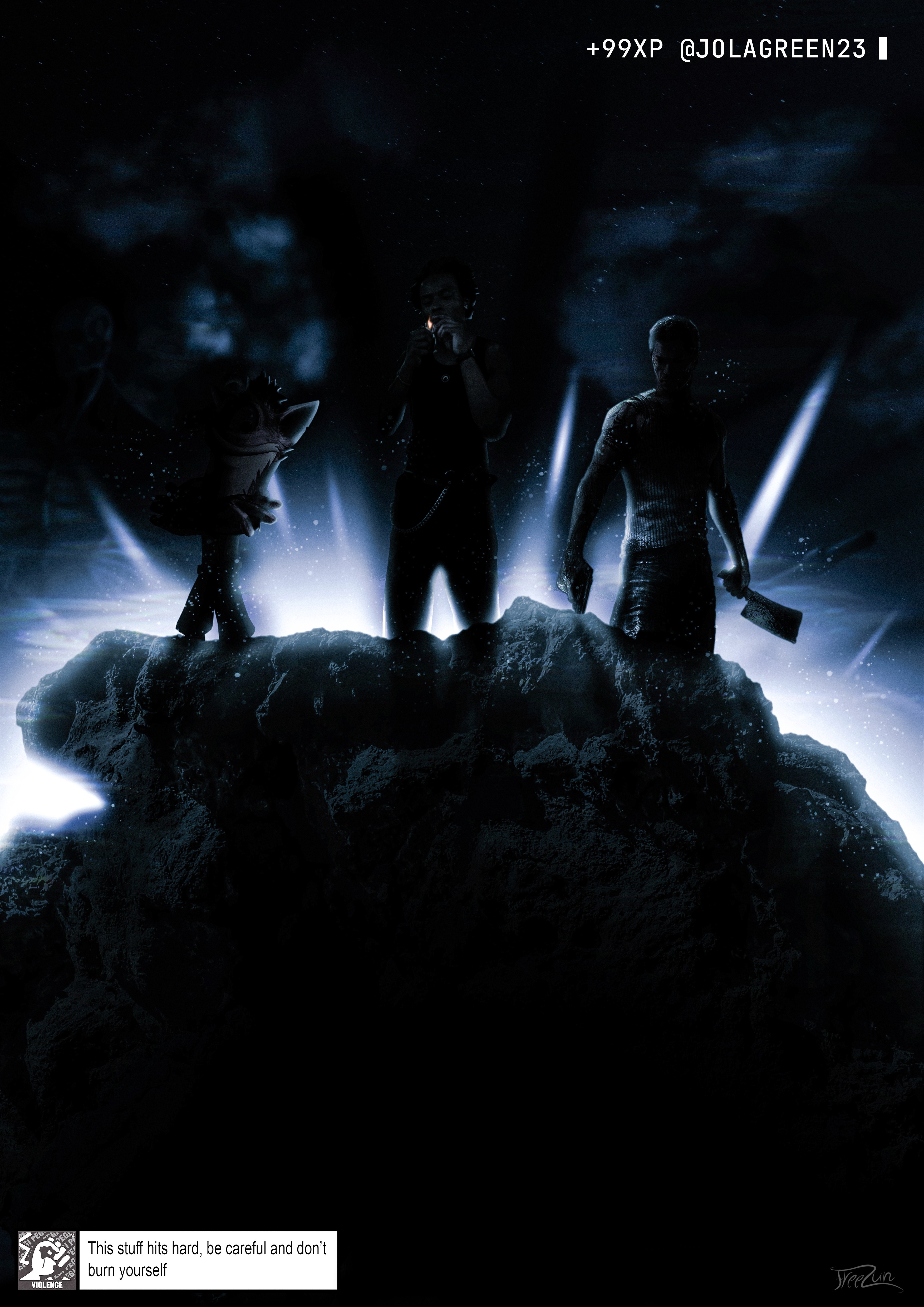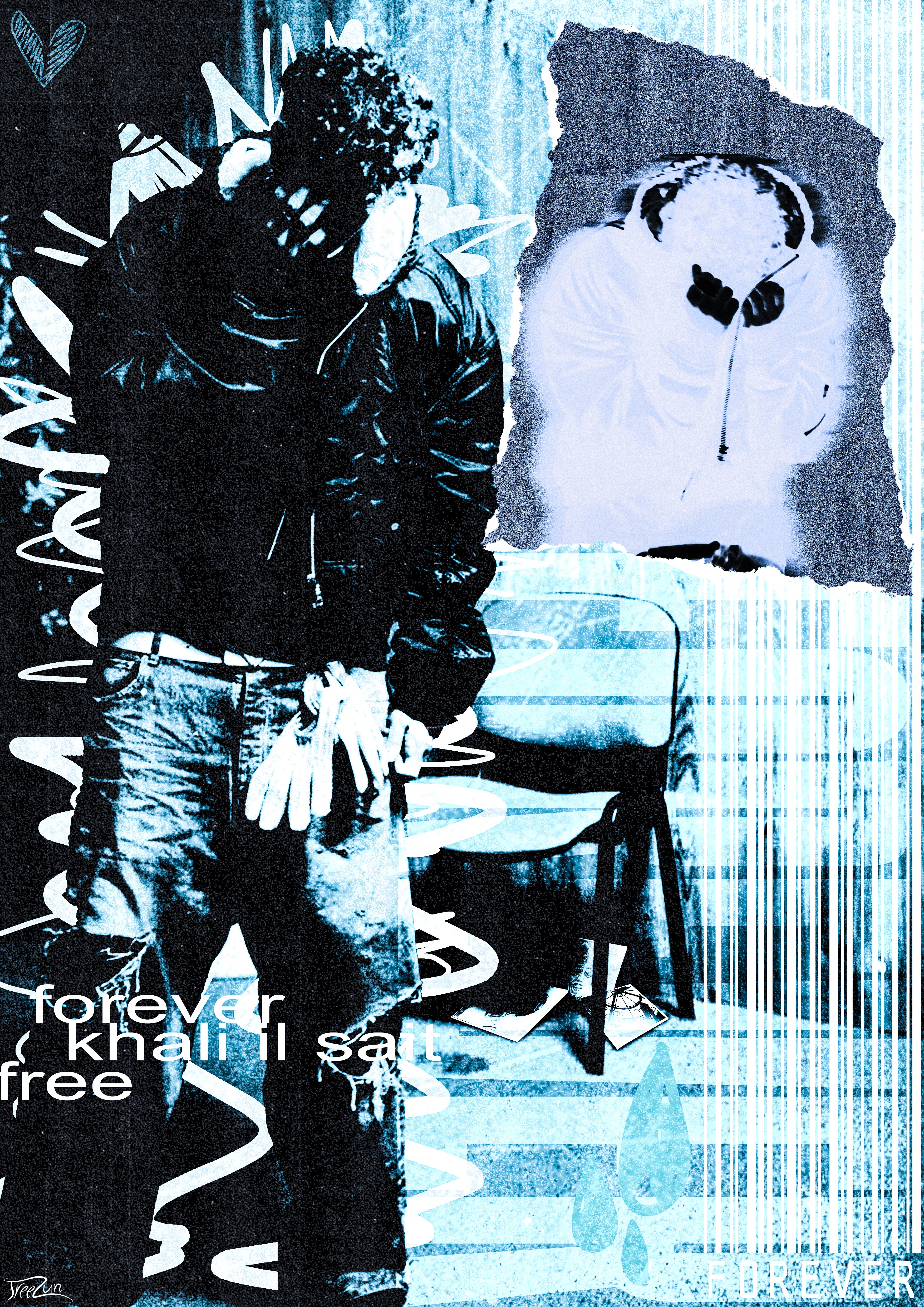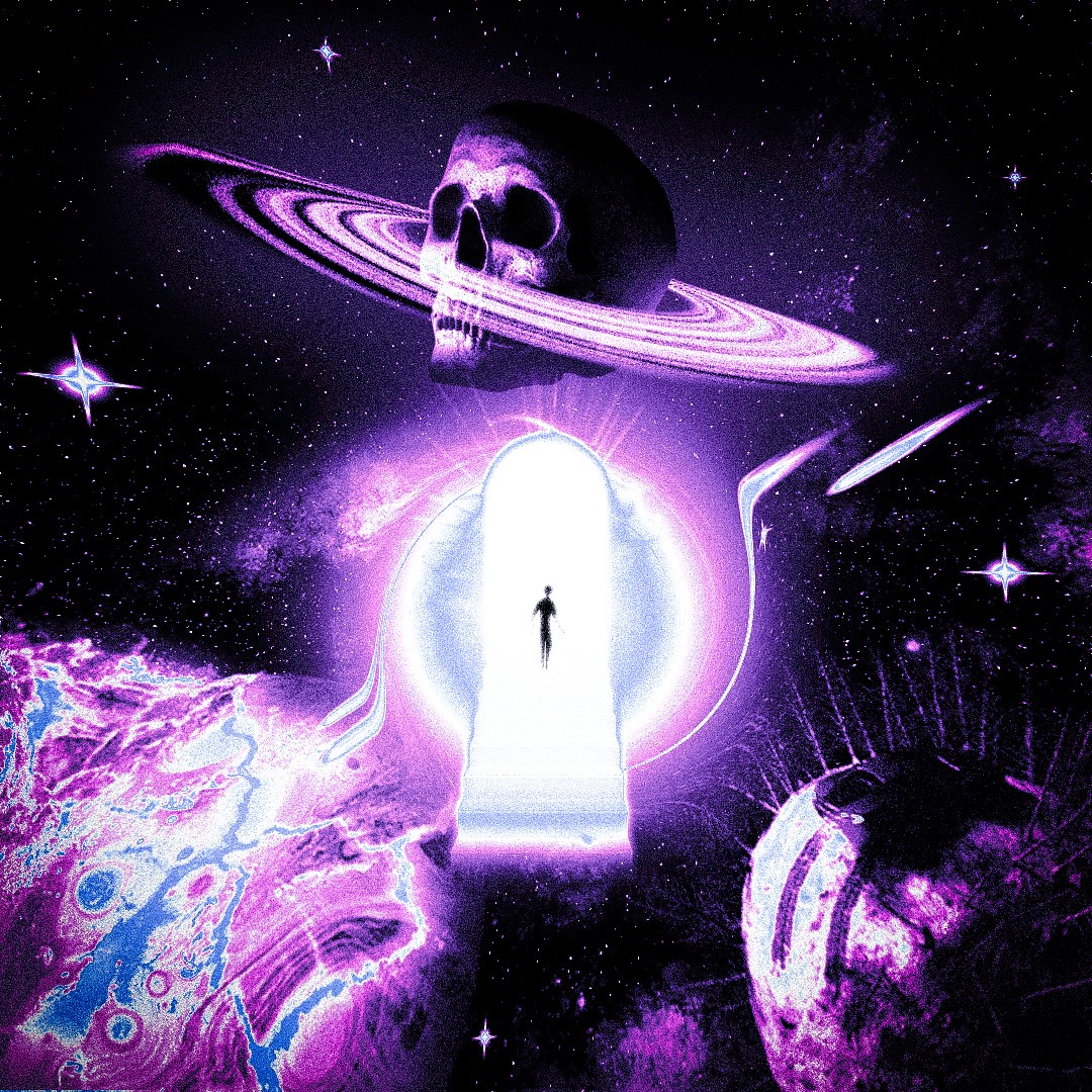 La création la plus représentative de cette section est une cover réalisée pour un concours lancé par l'artiste Bu$hi. L'exercice était simple en apparence : proposer la cover de son prochain album, EPILOGUE. Pour y répondre, j'ai choisi de raconter quelque chose. Ses albums précédents, Bushi Tape 1, 1.5, 2, 3, formaient une saga visuelle cohérente. J'ai récupéré des éléments de chacun pour les faire coexister dans une seule image, avec au centre un portail et un personnage qui le franchit, une métaphore directe du passage vers une nouvelle ère. Je n'ai pas été sélectionné. Mais la cover correspondait à 100% à mon univers, je l'ai publiée, et elle a sa place ici. Cette section existe aussi pour une raison simple : elle renvoie vers mon Instagram, où le reste de mon travail vit et respire au quotidien.